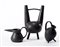 Tre vasi in ceramica smaltata in nero, realizzati su disegno di Gio Ponti....