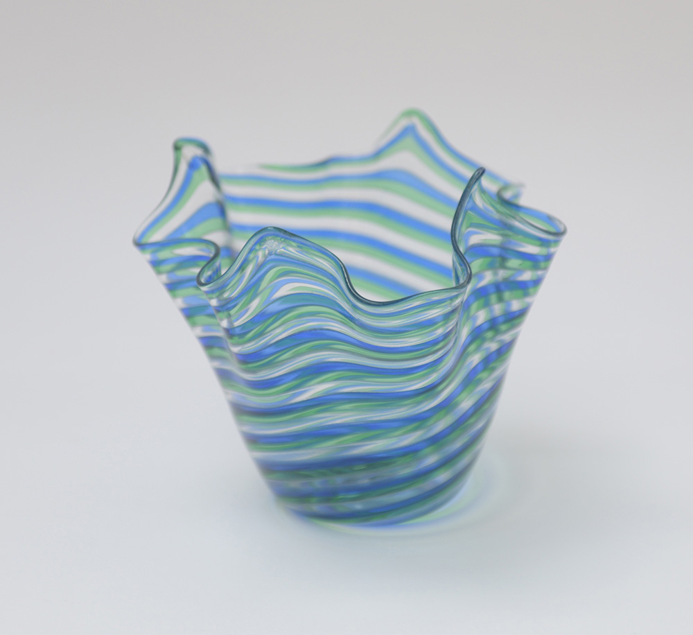 Manifattura di Murano Piccolo vaso a fazzoletto in vetro soffiato a canne...
