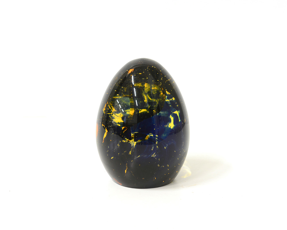 Manifattura di Murano. Uovo in vetro sommerso ambra e blu con inclusione di...