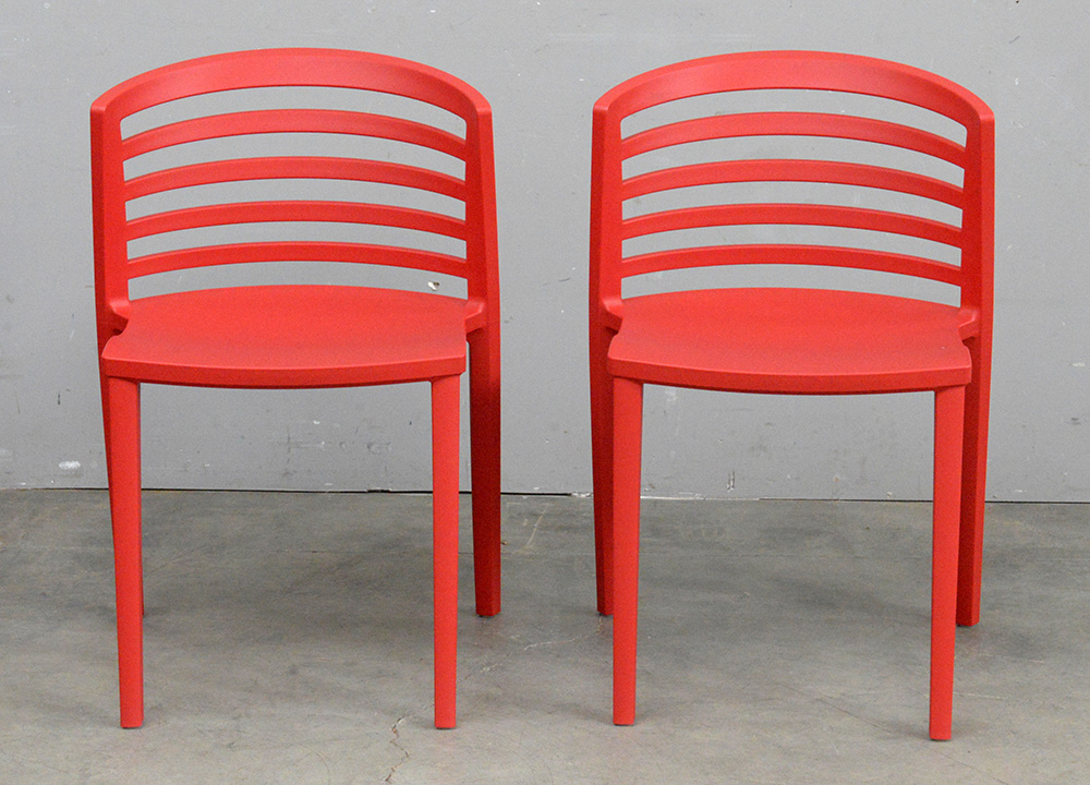 Paolo Favaretto (Padova 1950) Coppia di sedie modello "Venezia". Produzione recente Sintesi,. Polipropilene rosso. Premio Compasso d'oro Selection ADI 2008. (cm 52x77x51) -EN Coppia di sedie modello "Venezia". Produzione recente Sintesi,. Polipropilene rosso. Premio Compasso d'oro Selection ADI 2008. (cm 52x77x51)
