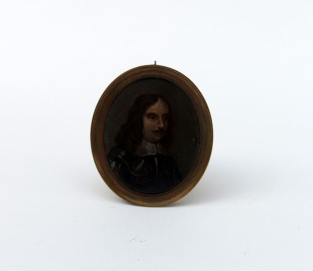 Scuola dell'inizio del secolo XVIII "Ritratto di nobiluomo in armatura" olio su rame (cm 7x6) In cornice in metallo