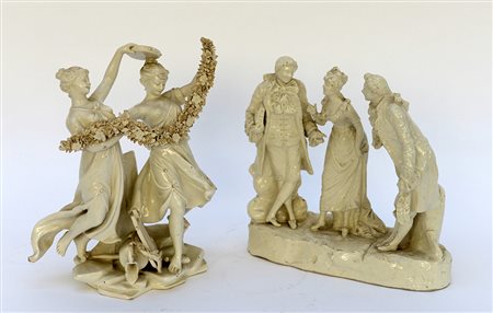 Manifatture diverse. Due gruppi in terraglia smaltata bianca raffiguranti...