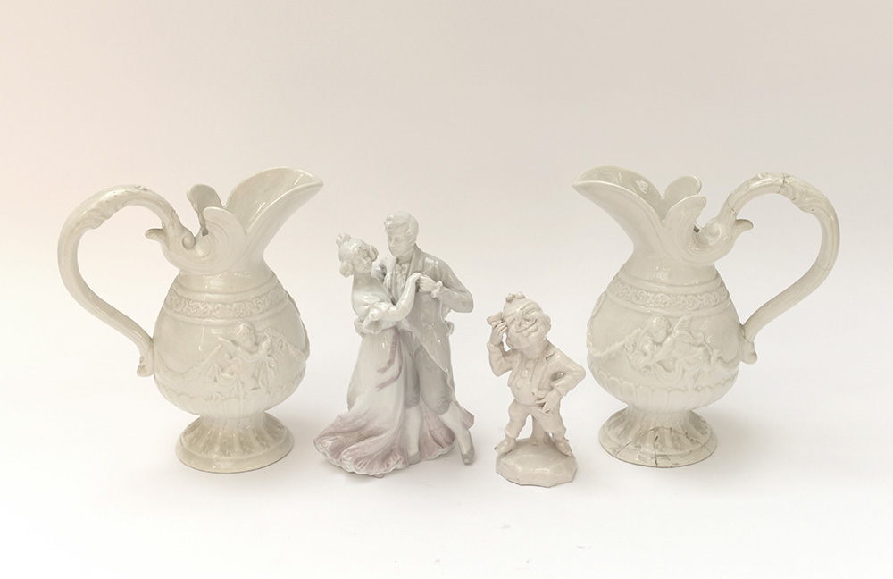 Lotto composto da quattro oggetti diversi in ceramica bianca (difetti)