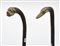 Lotto composto da due bastoni in legno con prese in corno decorate a teste...