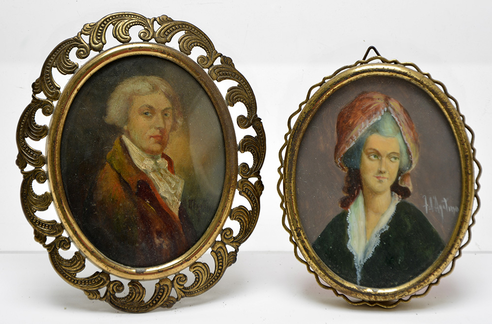 Lotto composto da due miniature raffiguranti gentildonna e gentiluomo in cornici dorate