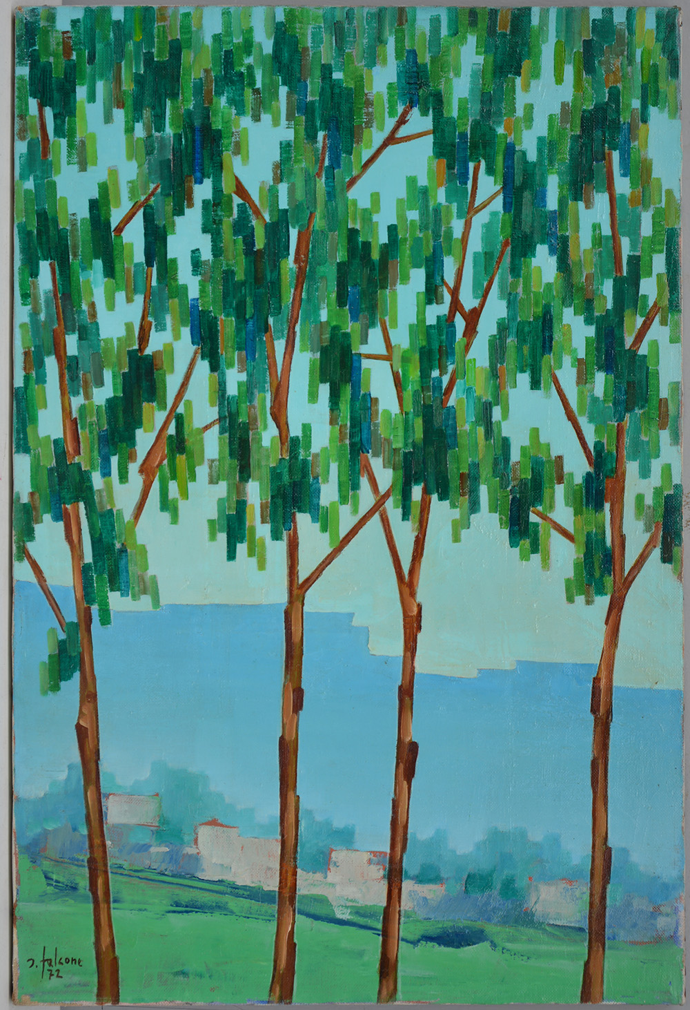 Salvatore Falcone "Campania antica" 1972, olio su tela (cm 60x40) firmato e datato in basso a sinistra. Titolato, firmato e datato al retro (lievi difetti)
