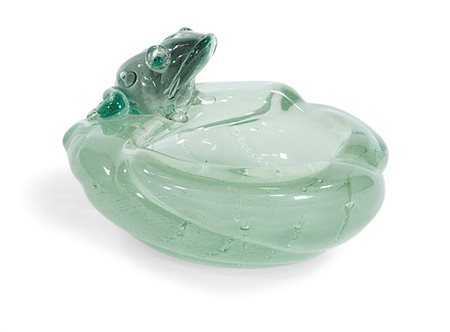 BARBINI ALFREDO Ciotola con rana in vetro fumato verde e inclusione di bolle....