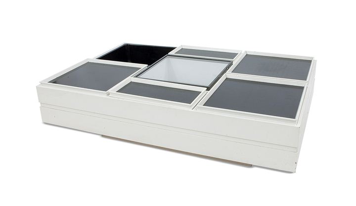 TAVOLINO Tavolino con contenitore a sei scomparti. Legno laccato, ottone...