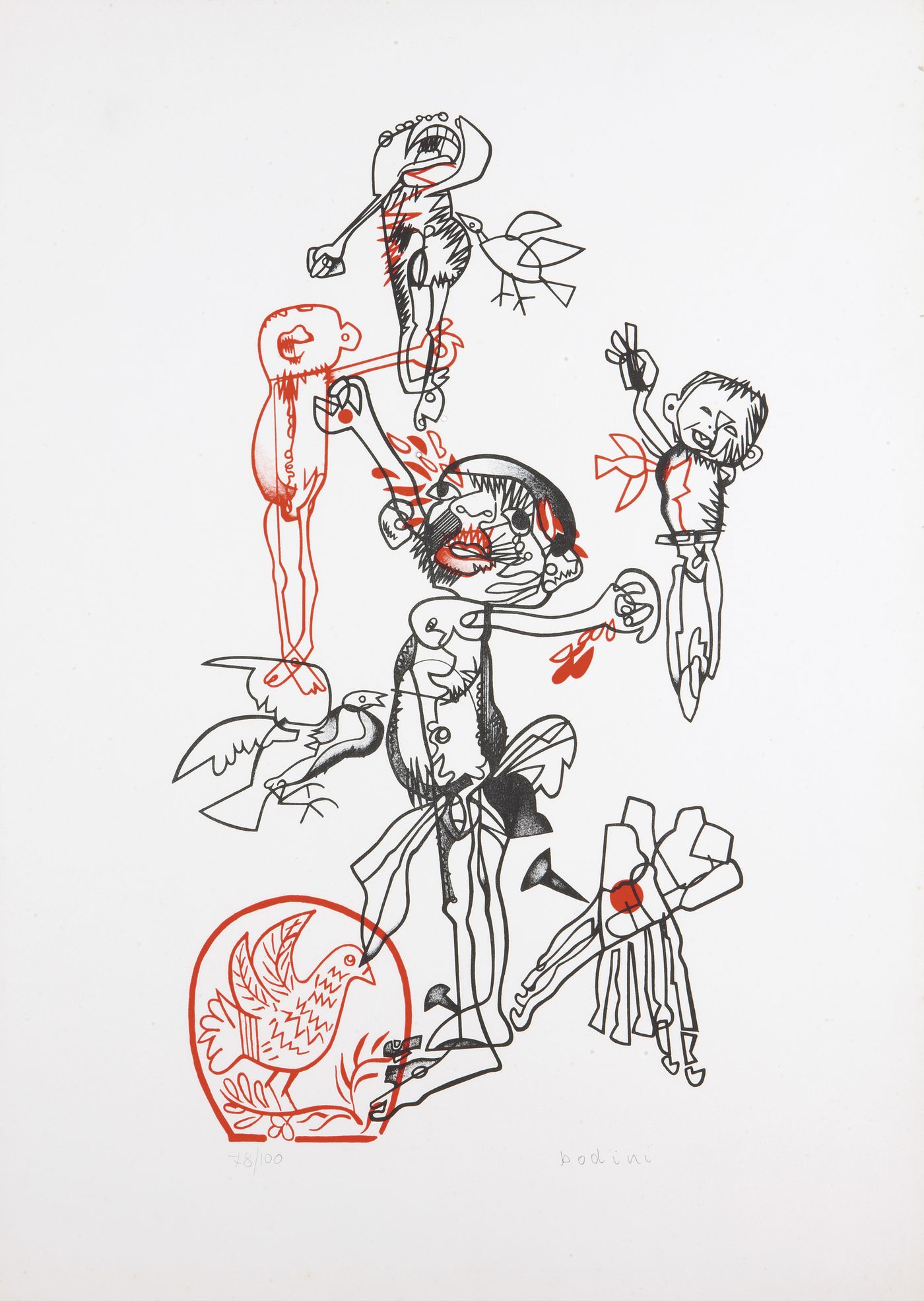 BODINI FLORIANO Geminio (VA) 1923 - 2005 "Personaggi" 70x50 litografia, es. 78/100 Opera firmata in basso a destra, numerata in basso a sinistra
