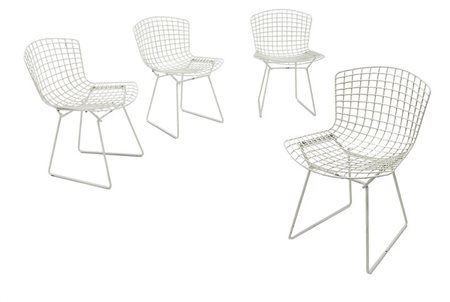 BERTOIA HARRY 420 Quattro sedie in tondino metallico saldato e laccato. Prod....