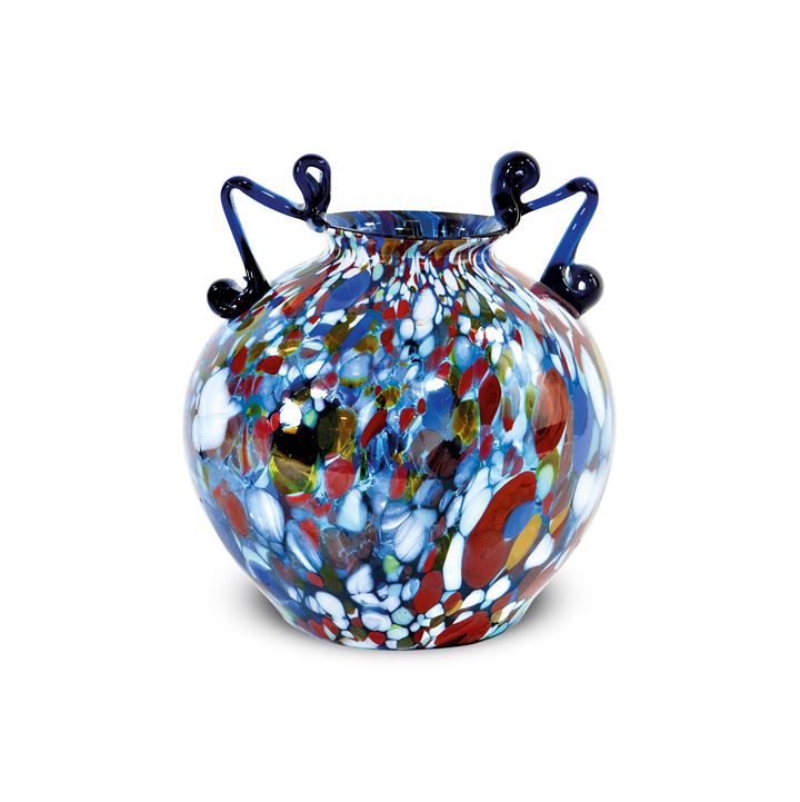 TOSO F.LLI Vaso Carnevale Vetro a macchie policrome con piccole prese...