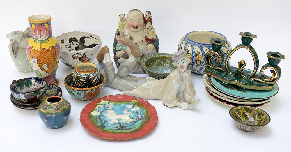 Un cartone contenente numerosi oggetti in ceramica e porcellana di diverso genere (difetti)