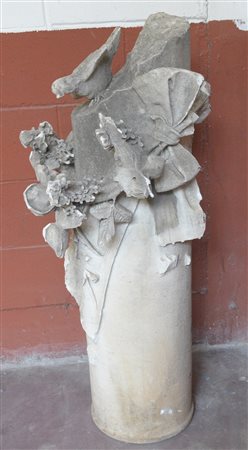 Colonna in pietra scolpita nella parte superiore a motivi di fiori e colombi (h cm 108) (difetti e mancanze)