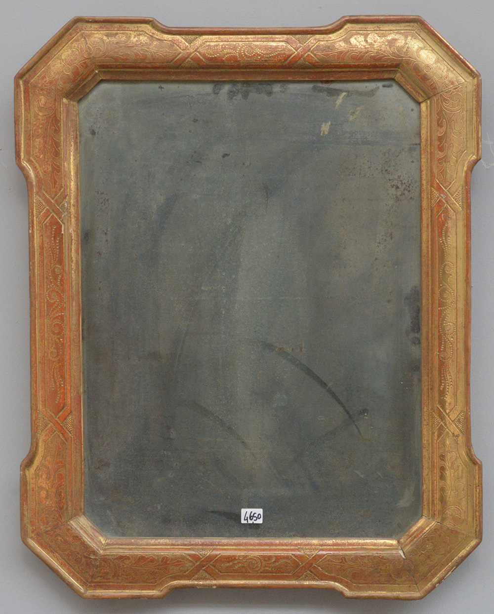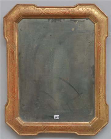 Specchierina a vassoio in legno dorato e bulinato decorata a motivi vegetali, sec. XIX (cm 75x59) (difetti)