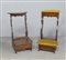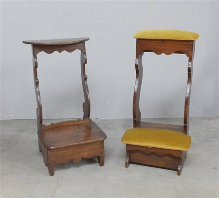 Lotto di due inginocchiatoi, di cui uno con predelle imbottite e con sostegni sagomati (difetti)