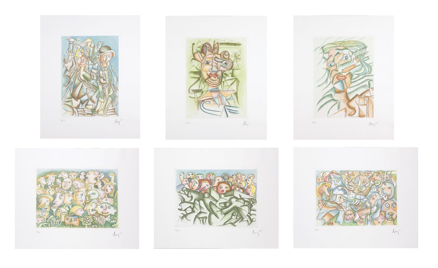 BAJ ENRICO Milano 1924 - 2003 Cartella "Futurismo statico" 1983, composta da 6 litografie a colori 60x50 (foglio), 39x30 litografia es. 36/150 60x50 (foglio), 39x28 litografia, es. 36/150 60x50 (foglio), 39x28 litografia, es. 36/150 50x60 (foglio), 29x39 litografia, es. 36/150 50x60 (foglio), 28x39 litografia, es. 36/150 50x60 (foglio), 27x39 litografia, es. 36/150 Opere firmate in basso a destra, numerate in basso a sinistra