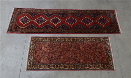 Lotto composto da due tappeti passatoia orientale uno con disegno floreale e l'altro geometrico (cm 277x81 e cm 188x85) (difetti)