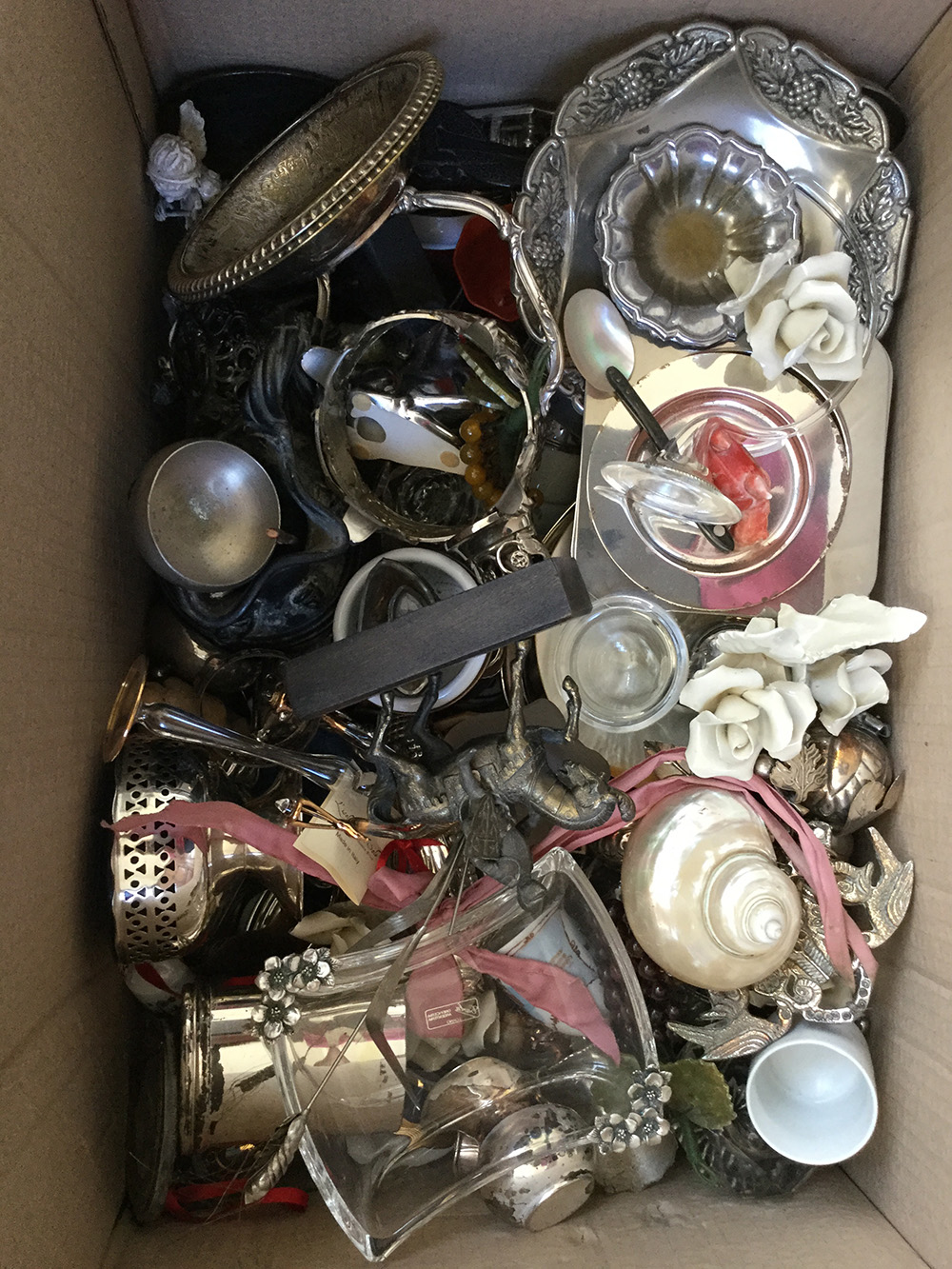 Cartone contenente numerosi souvenir e bomboniere (difetti)