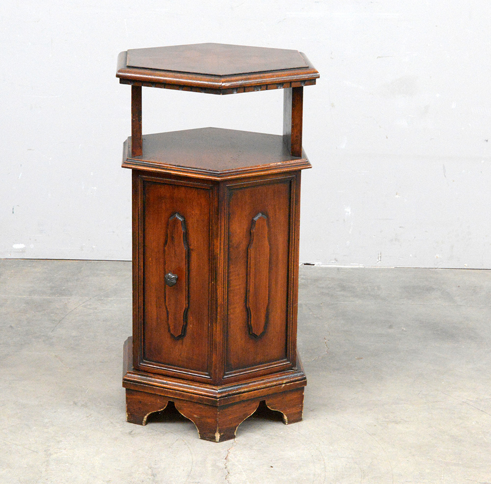 Mobiletto esagonale con vano a giorno ed uno sportello angolare (cm 40x75x40) (difetti)