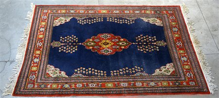 Tappeto orientale, secolo XX Disegno a medaglioni rosso su campo blu...