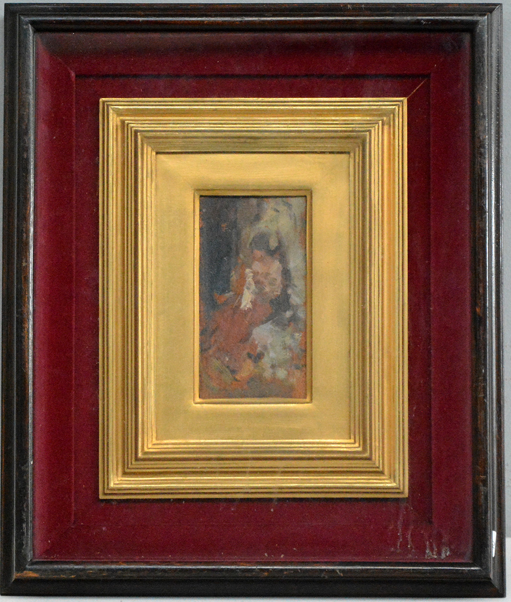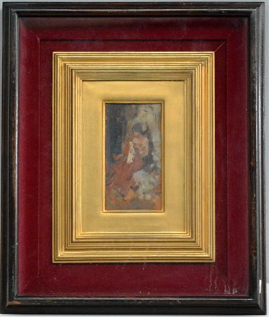 Ignoto "Donna seduta" olio su tavoletta (cm 13x7) In cornice