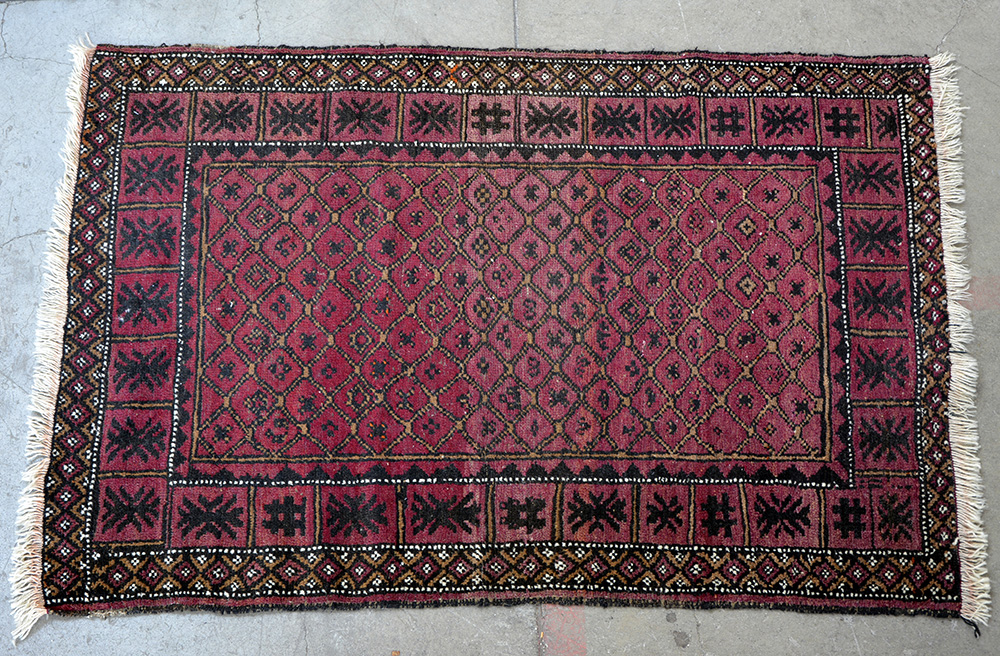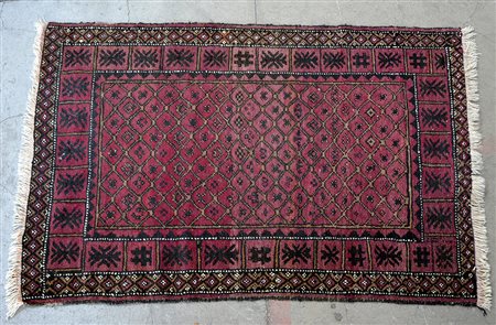 Tappeto Afghan, Turkestan occidentale fine secolo XIX Disegno a griglia su fondo ciclamino (cm 144x99) (difetti)