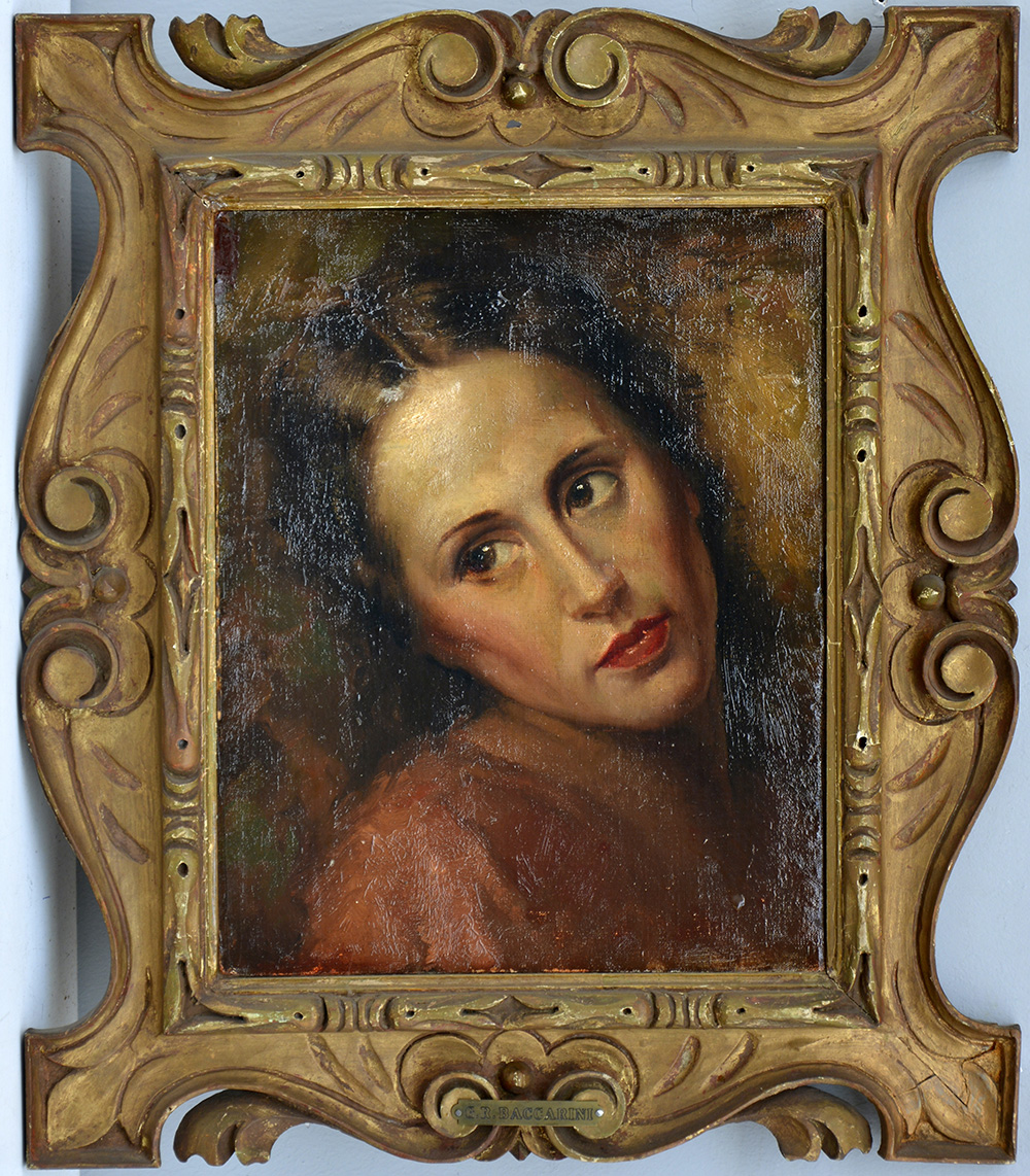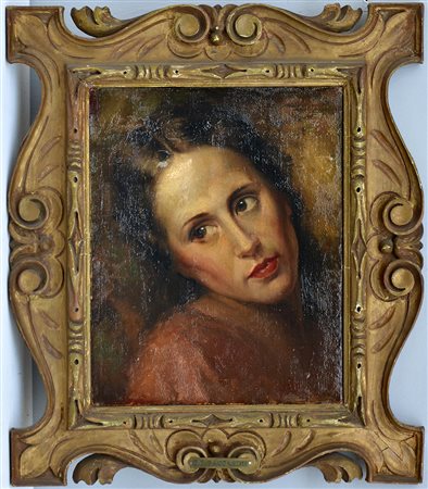 Ignoto, "Volto di ragazza" olio su tela (cm 37x30) in cornice (difetti e restauri)