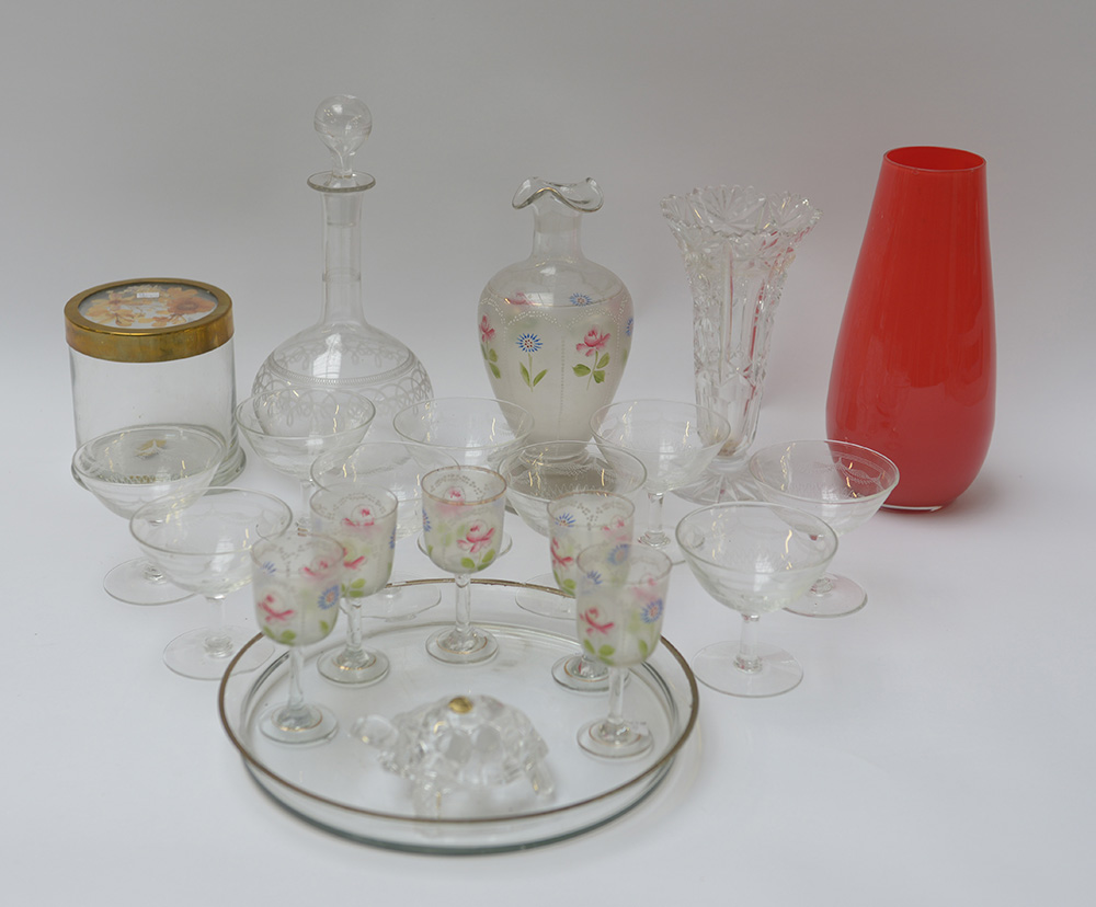 Cartone contenente numerosi oggetti per la tavola in vetro di fatture...