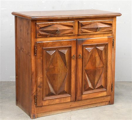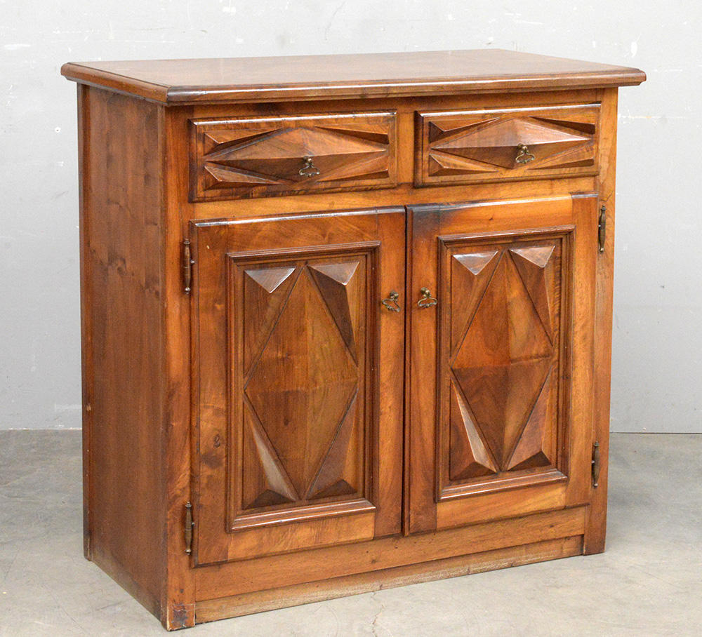 Credenzina da centro a due cassetti e due sportelli su ambo i lati con pannelli bugnati (cm 99x99x54) (difetti)
