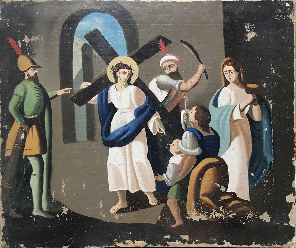 Ignoto secolo XIX, "Stazione della Via Crucis" olio su tela (cm 48x59)(difetti)