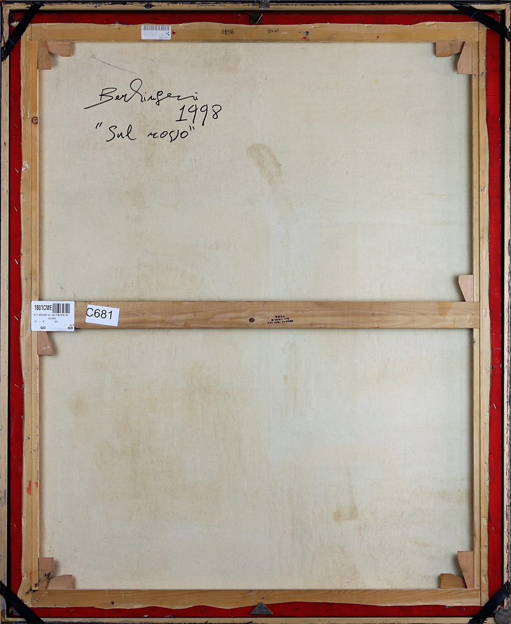 BERLINGERI CESARE (CITTANOVA 1948), Sul rosso, Tecnica mista su tela Anno 1998 Dim. 100x80 Autentica su foto dell'Artista Opera archiviata al N.G0102-0897 a cura di Dante Vecchiato Al verso titolo, data e firma