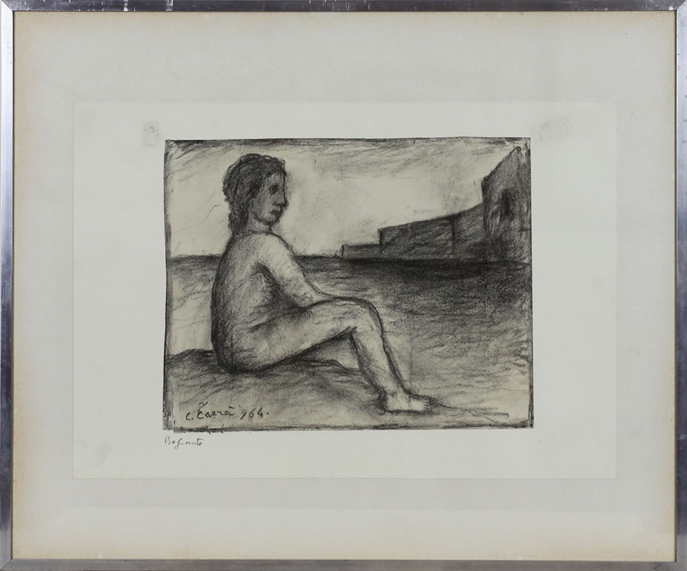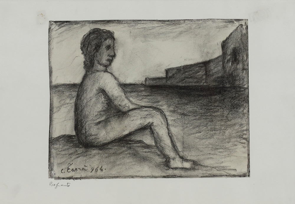 CARRA' CARLO (QUARGNENTO 1881 MILANO 1966), Bagnante, Carboncino su carta Anno 1964 Dim. 33x40,5 Opera Archiviata al N.5493/73 presso l'Archivio Alberto Schubert Firma data e titolo in basso a sx