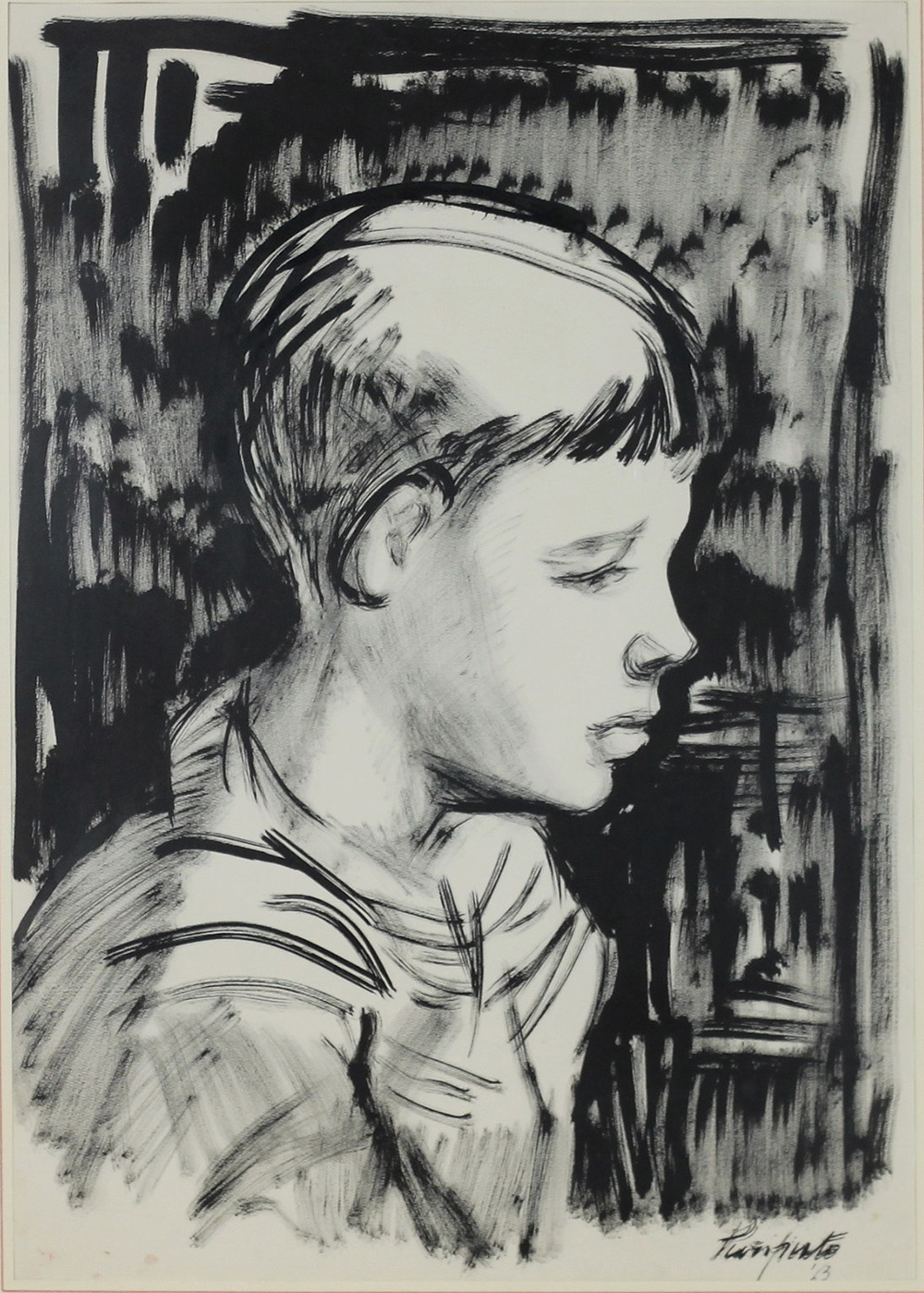 PURIFICATO DOMENICO (FONDI 1915 ROMA 1984), Ragazzo, China su carta Anno 1963 Dim. 70x50 Datato e firmato in basso a dx