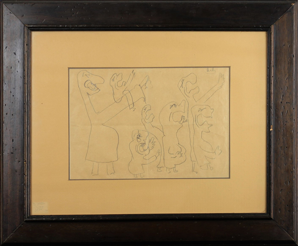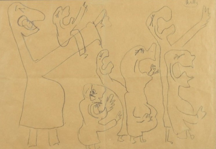 MATTA ROBERTO SEBASTIAN (SANTIAGO DEL CILE 1911 CIVITAVECCHIA 2002), Acclamazione, Matita grassa su carta Dim. 22x32,5 Autentica su foto di Finarte Spa Firmato in alto a dx
