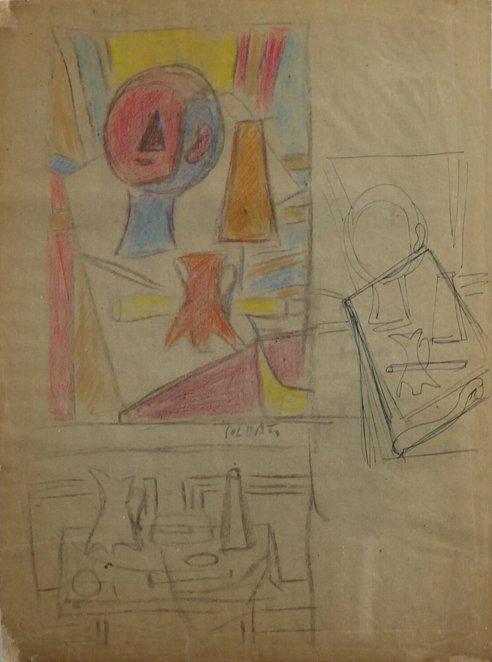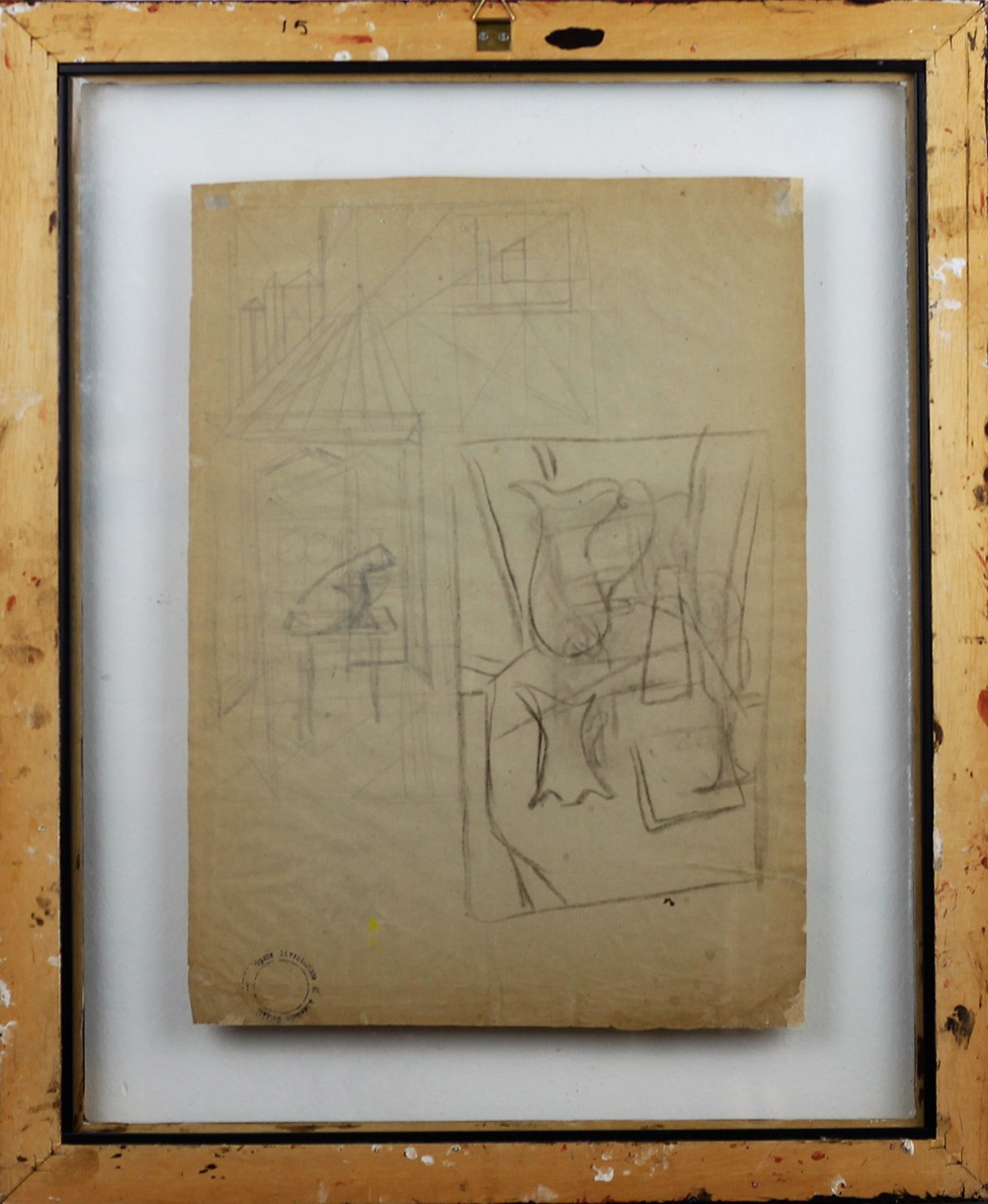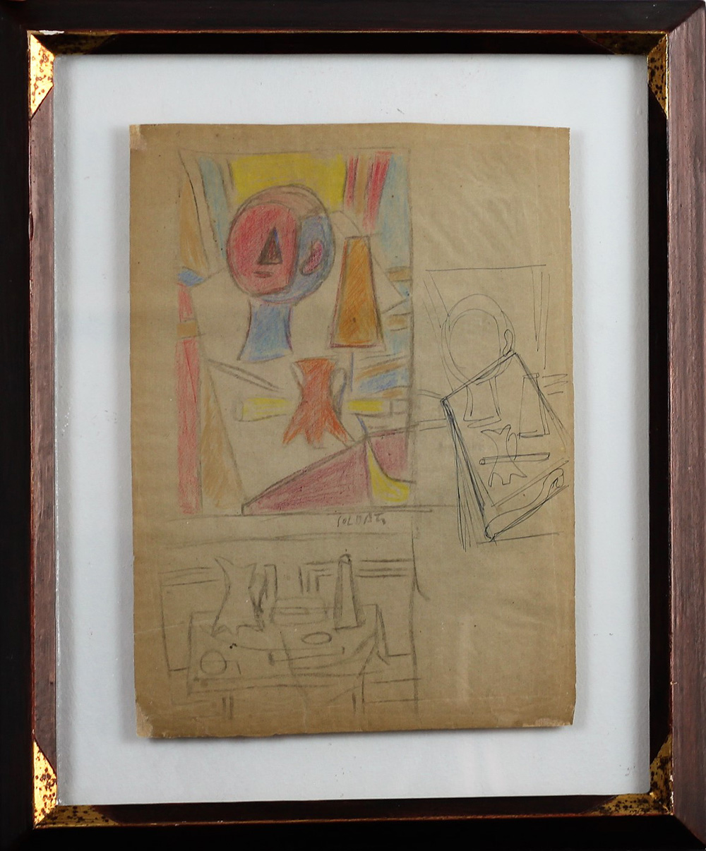 SOLDATI ATANASIO (PARMA 1896 PARMA 1953), Senza titolo, Tecnica mista su cartoncino Dim. 36x24,5 Timbro Augusto Garau che ne certifica l'autenticità Al verso altra composizione Firmato al centro