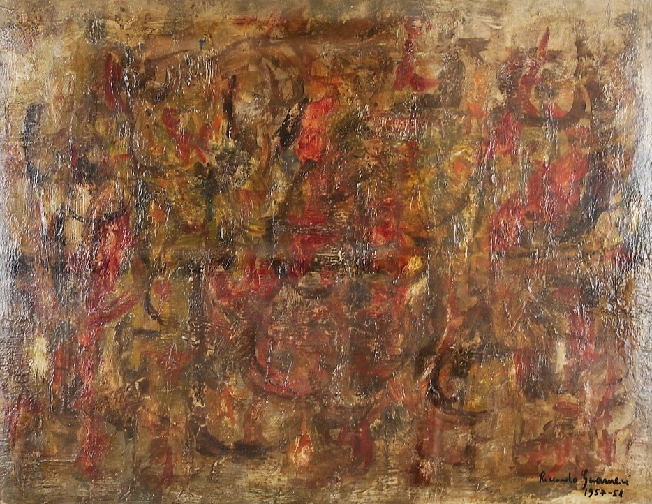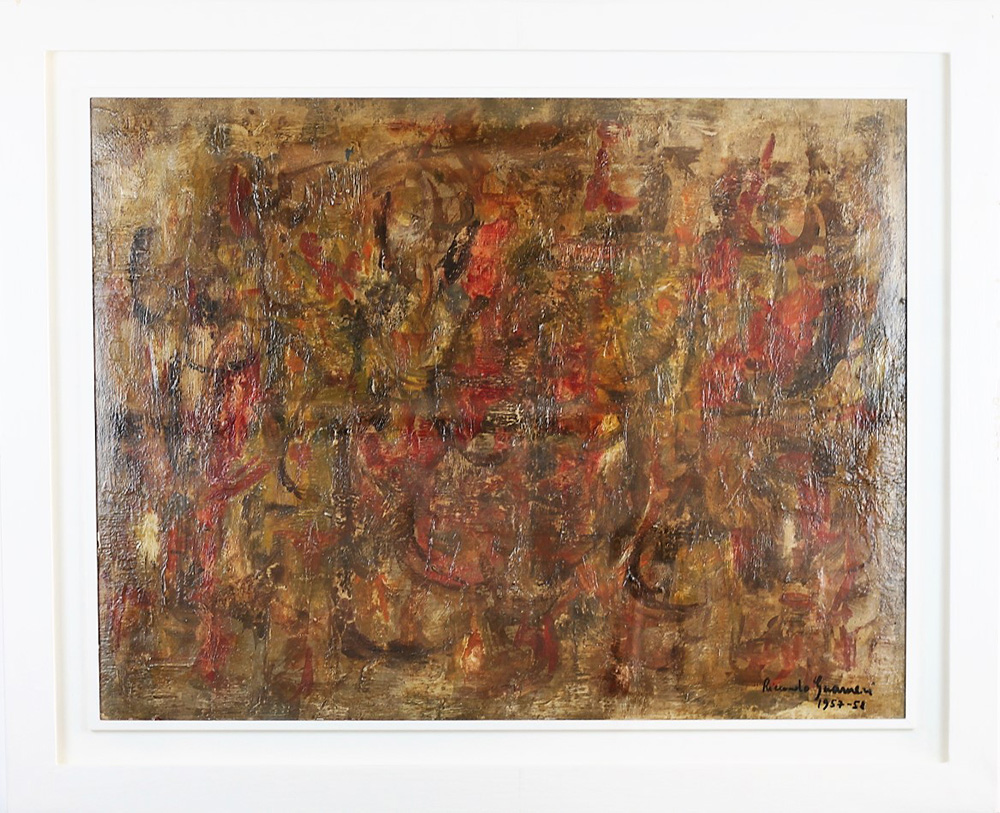 GUARNERI RICCARDO (FIRENZE 1933), Paesaggio, Olio su cartone Anno 1957/58...