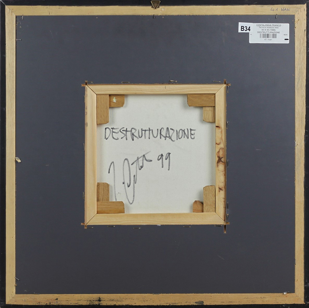 COSTALONGA FRANCO (VENEZIA 1933), Destrutturazione, Tecnica mista su tela Anno 1999 Dim. 30x30 Autentica su foto dell'Artista Al verso titolo, data e firma