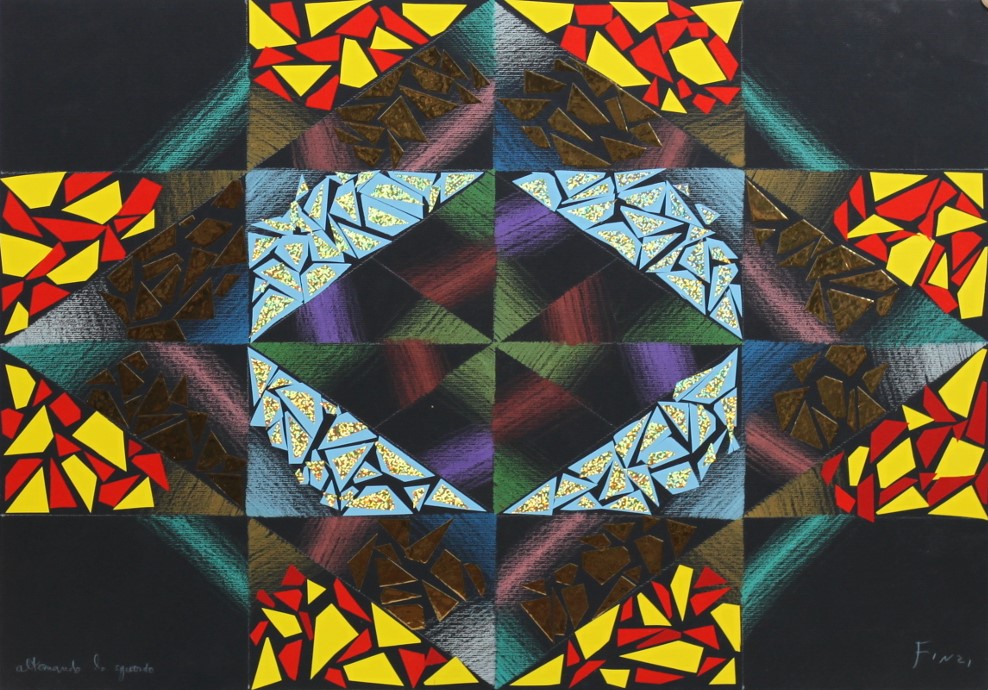 FINZI ENNIO (VENEZIA 1931), Alternando lo sguardo, Anni 2000 Dim.35x50 Tecnica mista su cartoncino Opera senza cornice Autentica su foto dell’artista Titolo in basso a sx Firmato in basso a dx
