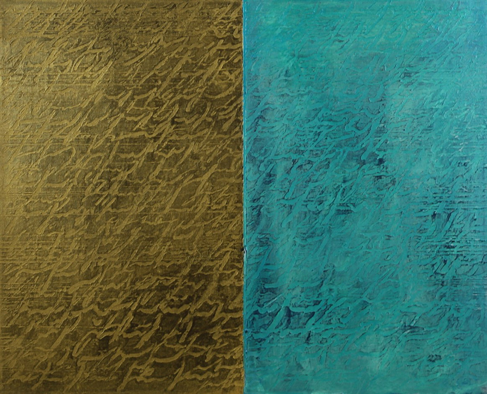 RAPETTI ALFREDO (MILANO 1961), Gold/acquamarina, Acrilico su tela Anno 2006 Dim. 40x50 Autentica su foto dell'Artista Al verso firma titolo e anno