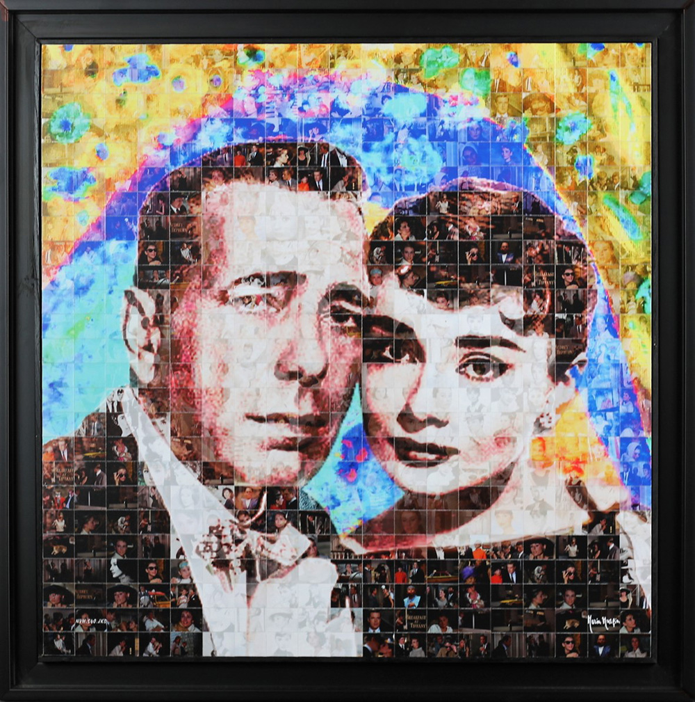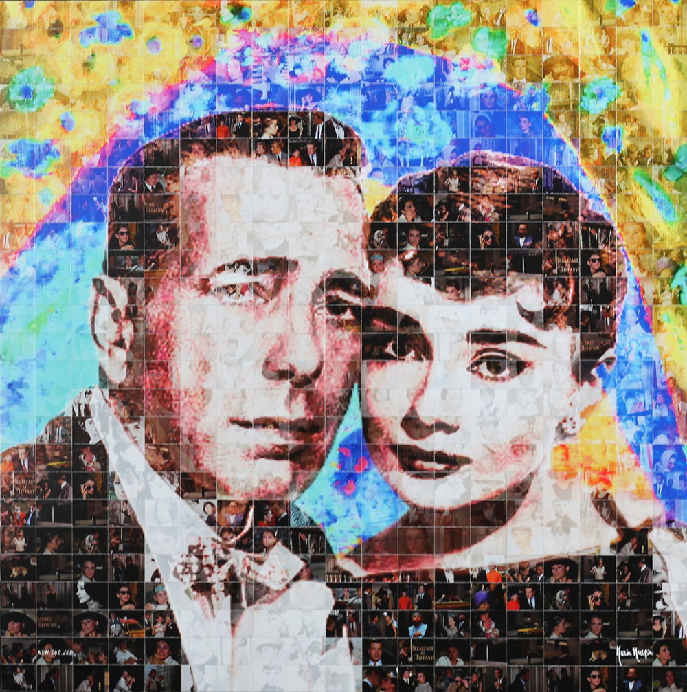 MURGIA MARIA (OSSI 1935), Omaggio a Audrey Hepburn e Humphrey Bogart, Fotomosaico digitale Anno 2018 Dim. 50x50 Archivio opere digitali Maria Murgia N° Repertorio NVH.540.JKD Al verso certificato di garanzia Firmato in basso a dx