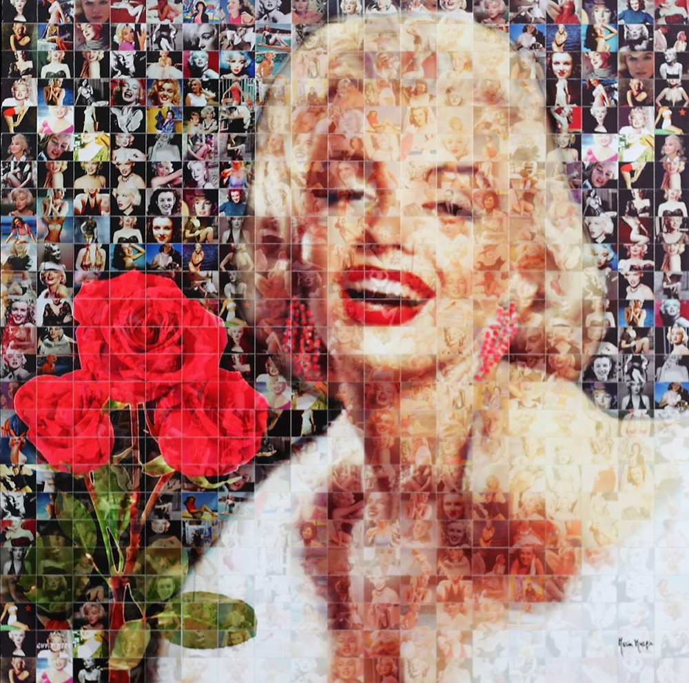 MURGIA MARIA (OSSI 1935), Omaggio a Marilyn Monroe, Fotomosaico digitale Anno 2018 Dim. 50x50 Archivio opere digitali Maria Murgia N° Repertorio FRT.706.KJU Al verso certificato di garanzia Firmato in basso a dx