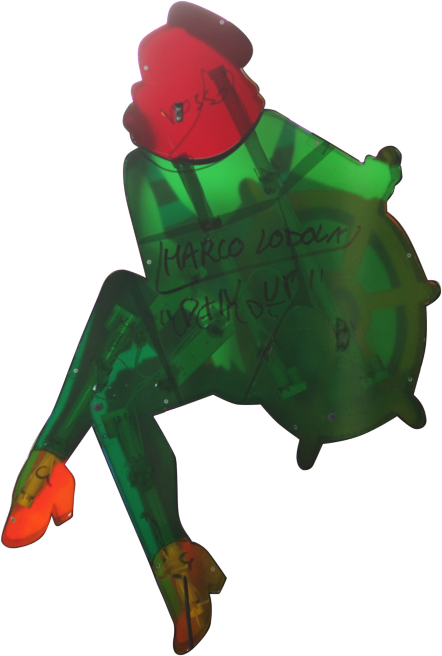 LODOLA MARCO (DORNO 1955), Pin up, Scultura luminosa plexiglass e neon Anni 2000 Dim. 112x62x14 Autentica su foto dell'Artista Al verso titolo e firma