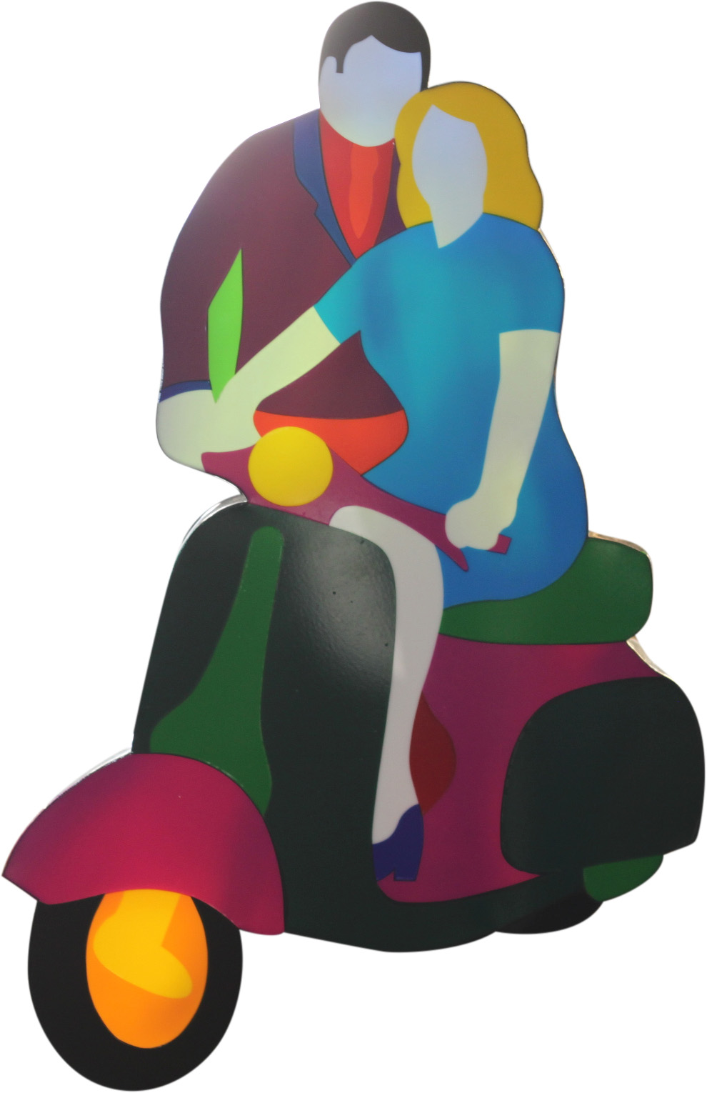 LODOLA MARCO (DORNO 1955), Vespa, Scultura luminosa plexiglass e neon Anni 2000 Dim. 107x67x12 Autentica su foto dell'Artista Al verso titolo e firma