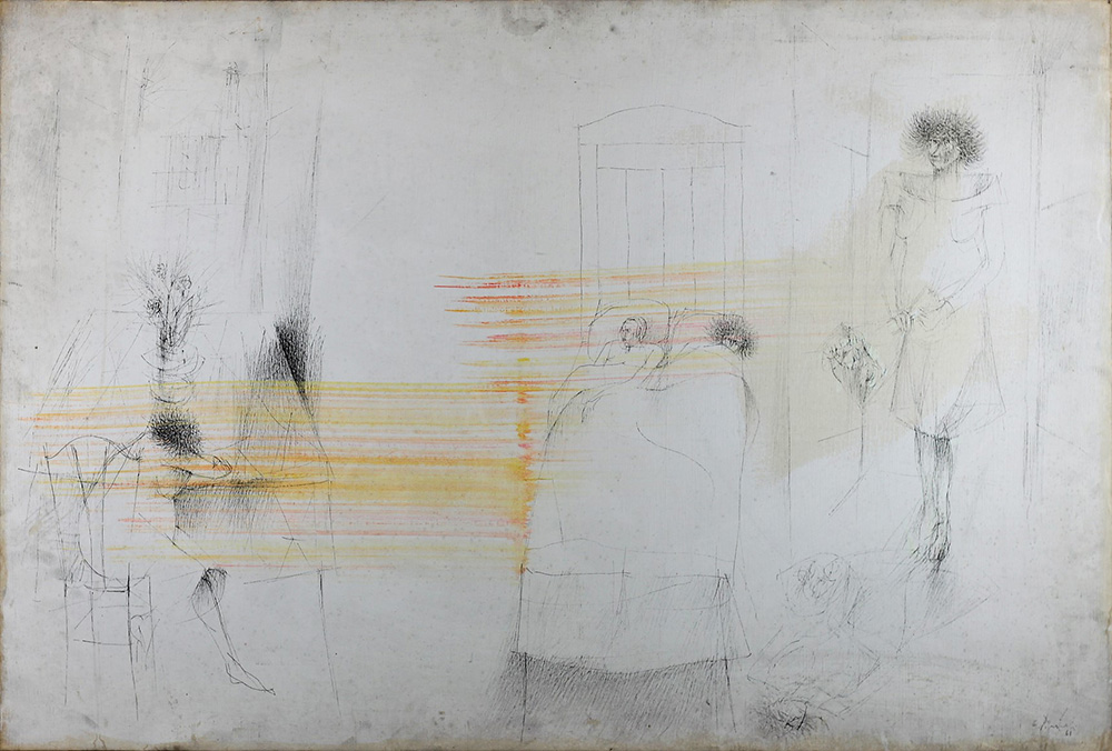 PIGNATELLI ERCOLE (LECCE 1935), Indagine interna, Tecnica mista su tela Anno 1960 Dim. 80x120 Opera senza cornice Al verso data, titolo e firma Datata e firmata in basso a dx