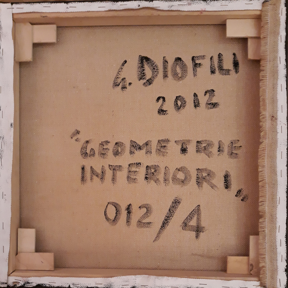 DIOFILI GIULIANO (LA SPEZIA 1948), Geometrie interiori, Olio su tela Anno 2012 Dim. 50x50 Autentica su foto dell'Artista Al verso titolo, data e firma
