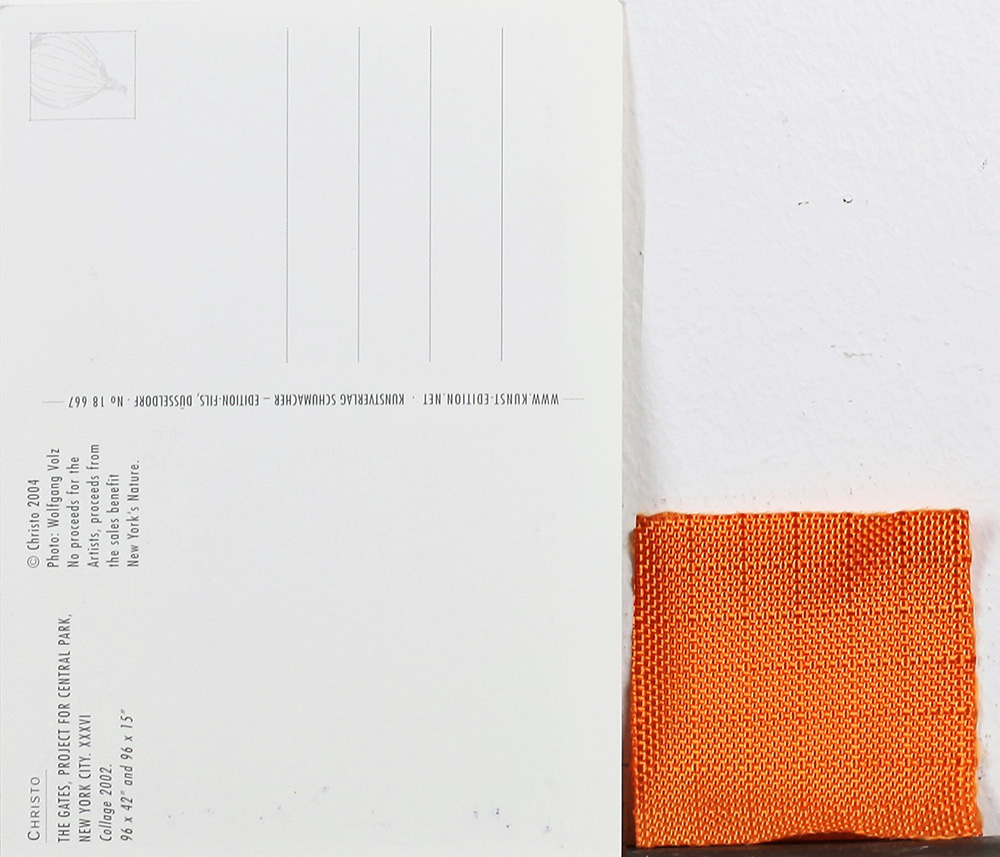 CHRISTO (Gabrovo 1935), Senza titolo, Cartolina autografa con stoffa Senza...