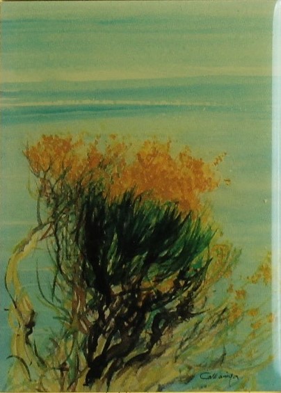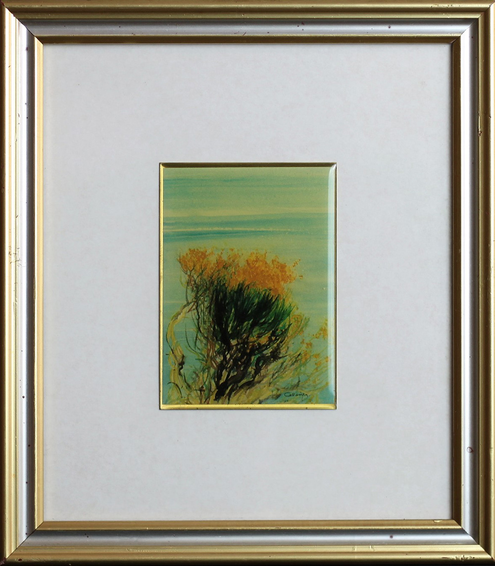 CAZZANIGA GIANCARLO (MONZA 1930 MONZA 2013), Ginestre sul mare, Minilitografia smaltata Dim. 10x7 Firmato in basso a dx
