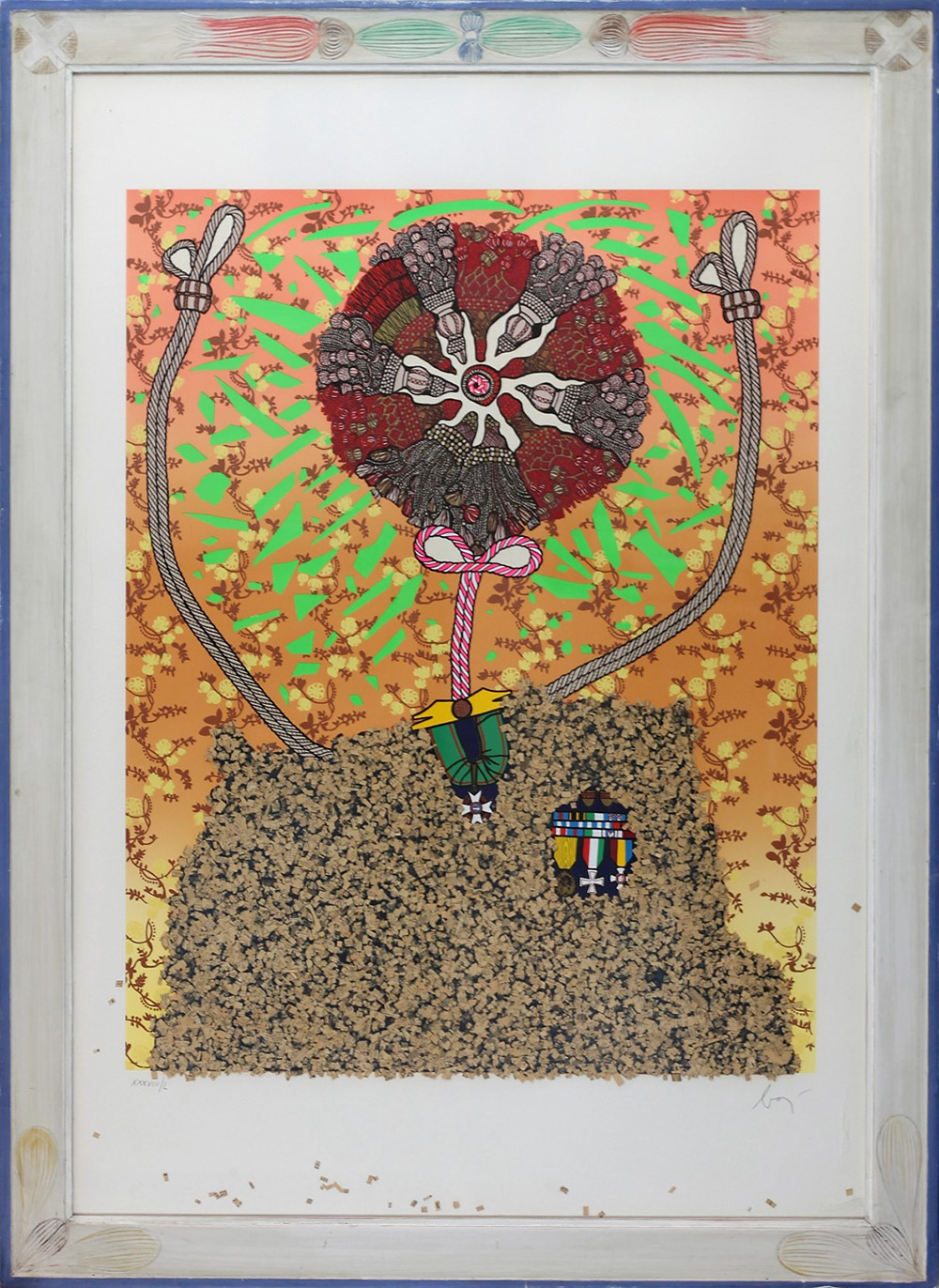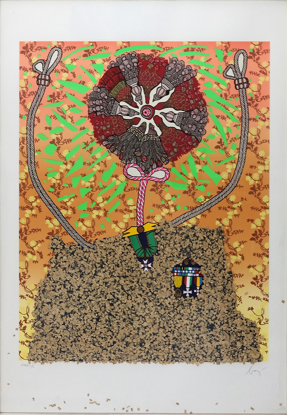 BAJ ENRICO (MILANO 1924 VERGIATE 2003), Senza titolo, Serigrafia e collage Dim. 100x70 Esemplare 38/50 Tiratura in basso a sx Firmato in basso a dx