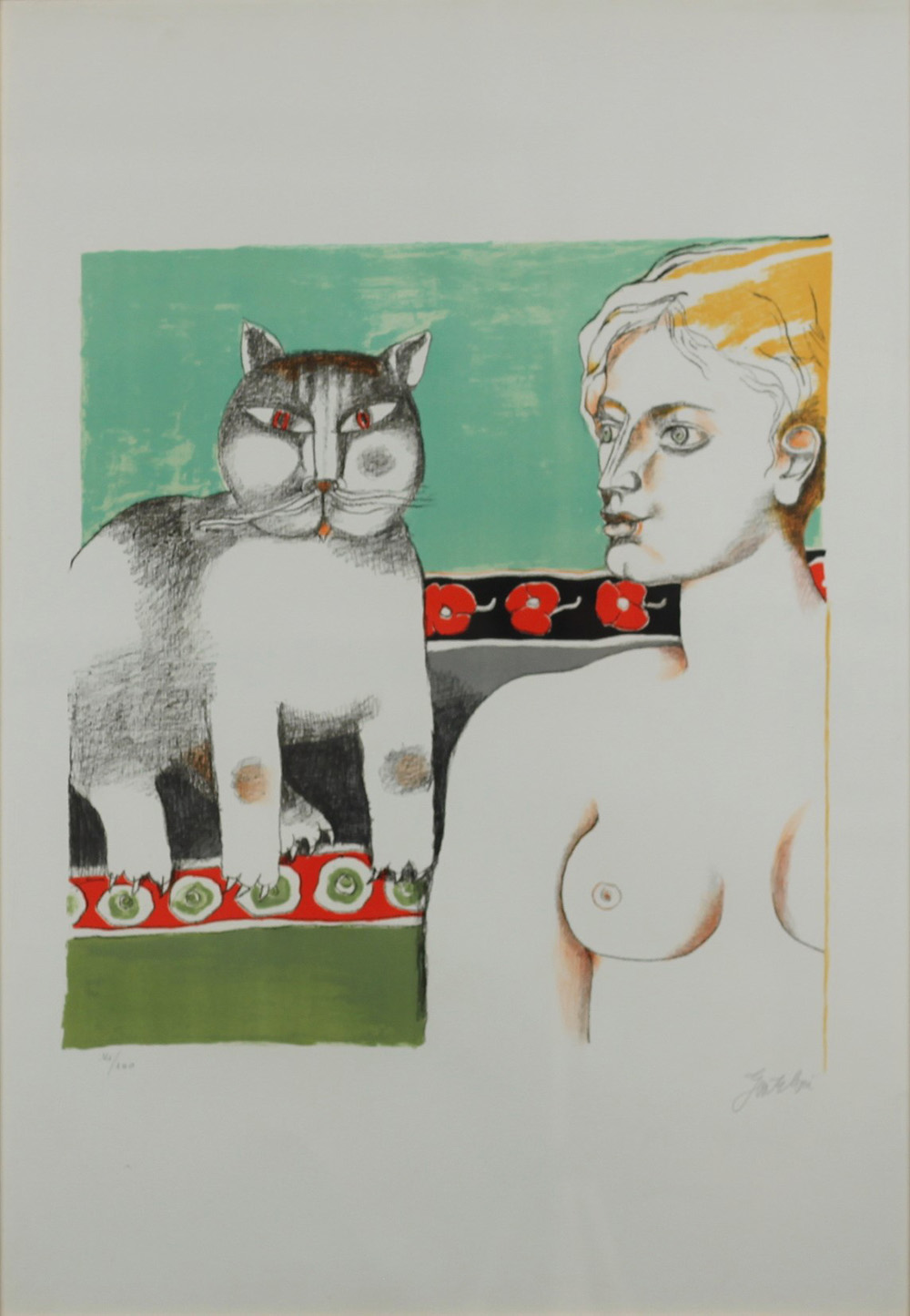 GENTILINI FRANCO (FAENZA 1909 ROMA 1981), Donna con il gatto, Litografia Anni...