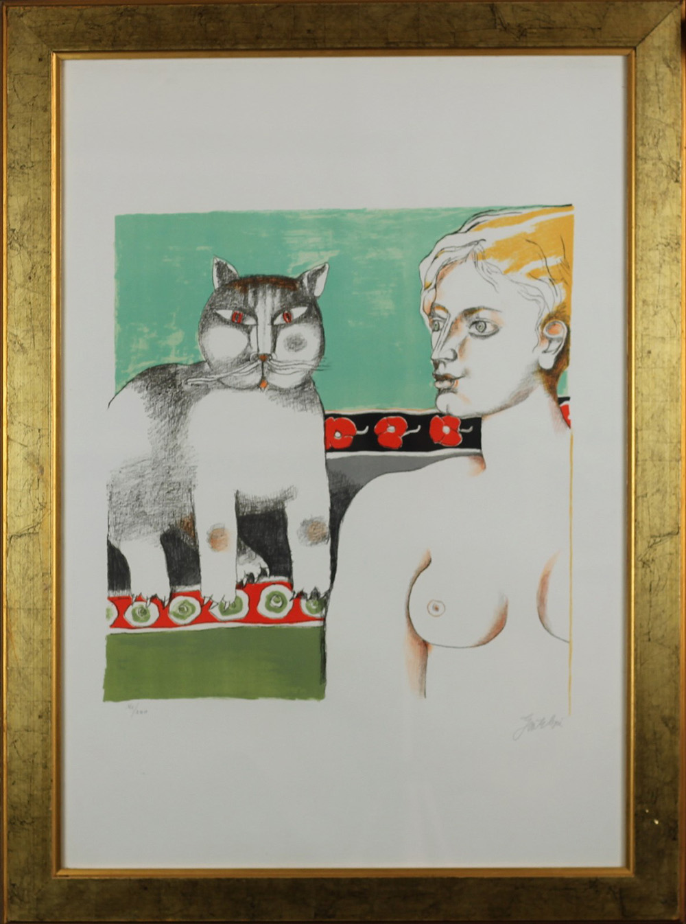GENTILINI FRANCO (FAENZA 1909 ROMA 1981), Donna con il gatto, Litografia Anni 60 Dim. 70x50 Esemplare 14/100 Tiratura in basso a sx Firmato in basso a dx